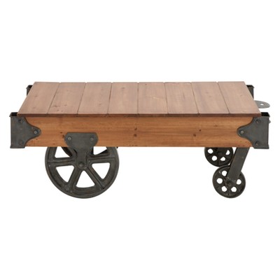 Industrial & vintage iron metal & solid wood cart coffee table.
